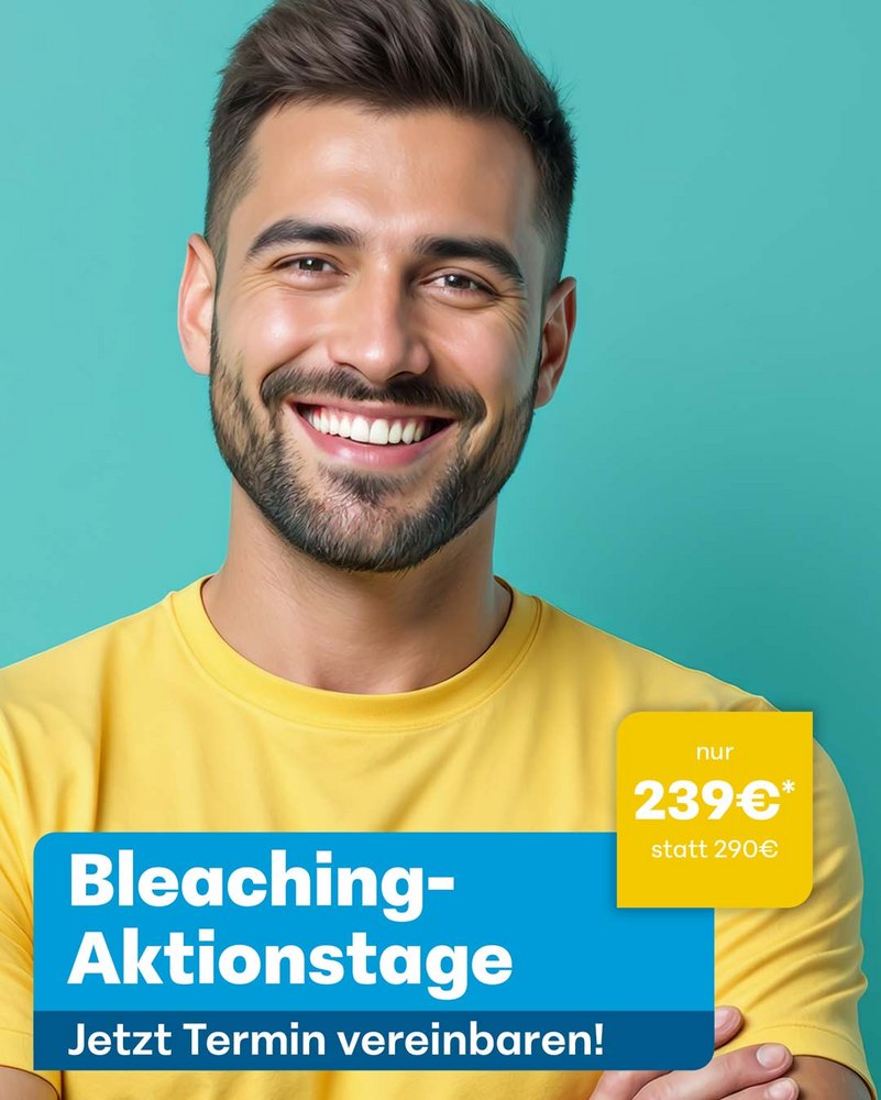 Durch Abnutzung und färbende Lebensmittel verändert sich die Zahnfarbe mit der Zeit. Nicht jeder hat von Natur aus strahlend weiße Zähne. Ein professionelles Bleaching im AllDent Zahnzentrum Karlsruhe hellt die Zahnfarbe um eine oder mehrere Farbstufen auf. Wir verwenden schonende Bleichmittel, die den Zahnschmelz nicht angreifen.